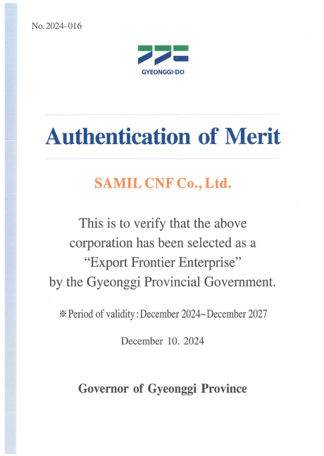 Gyeonggi Promising Small and Medium-sized Enterprise Certificate of Authentication